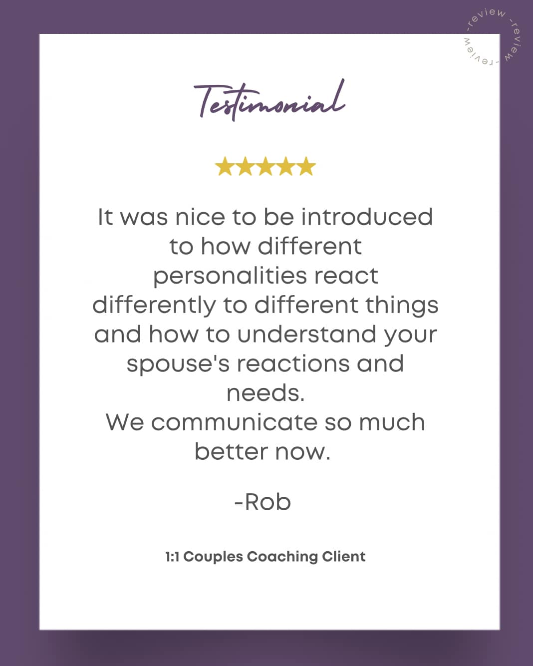 I only work with 7 couples at a time so you’re never a number. The details of your story matter and I want to be able to not only give you as much access to me as possible but to remember the details you’ve told me. Simply put, one hour/session a week is not enough to better a marriage and I want to be there to support, guide and help you create as much as possible.